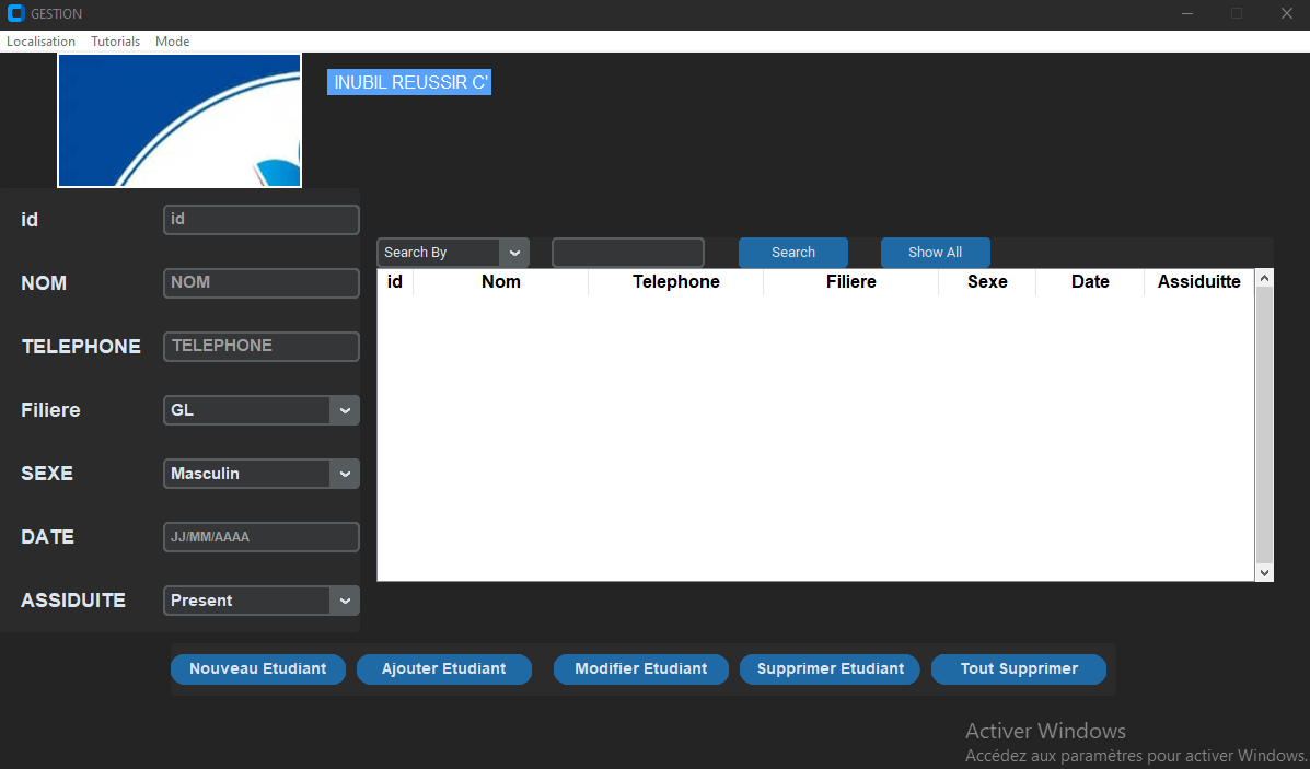 Cette application permet la gestion de la presence des etudiants a l'ecole.Elle est constitue de plusieurs fonctionnalite dont l'ajout,la modification,la suppression,la recherche d'un etudiant.