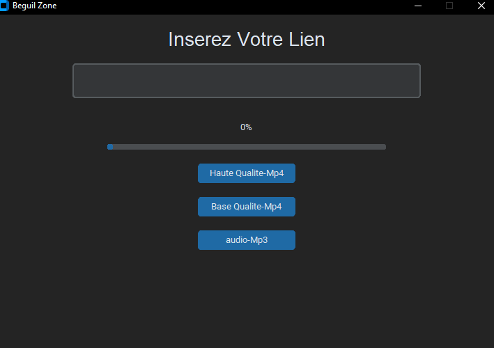 Cette application permet de telecharger des videos Youtube grace au lien de la video.Vous avez le choix entre la haute qualite,la basse qualite et l'audio de la video.